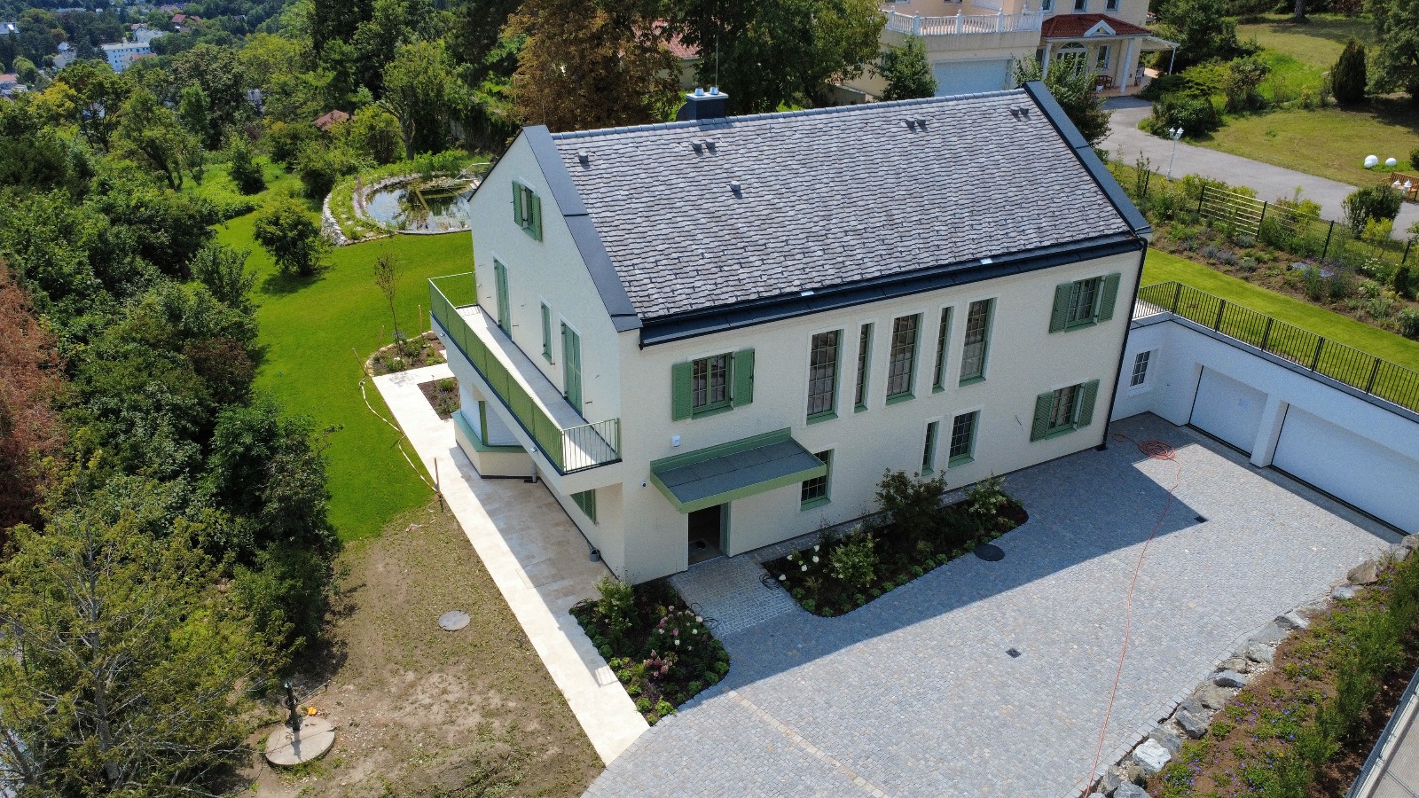 Auf dem Grundstück wurde eine Villa als Generalunternehmer in 18 Monaten errichtet. Die Ausstattung erfolgte nach dem derzeitigen Stand der Technik mit Erdwärmebohrungen sowie einer Photovoltaikanlage und hochwertigen Teilen im gesamten Gebäude.